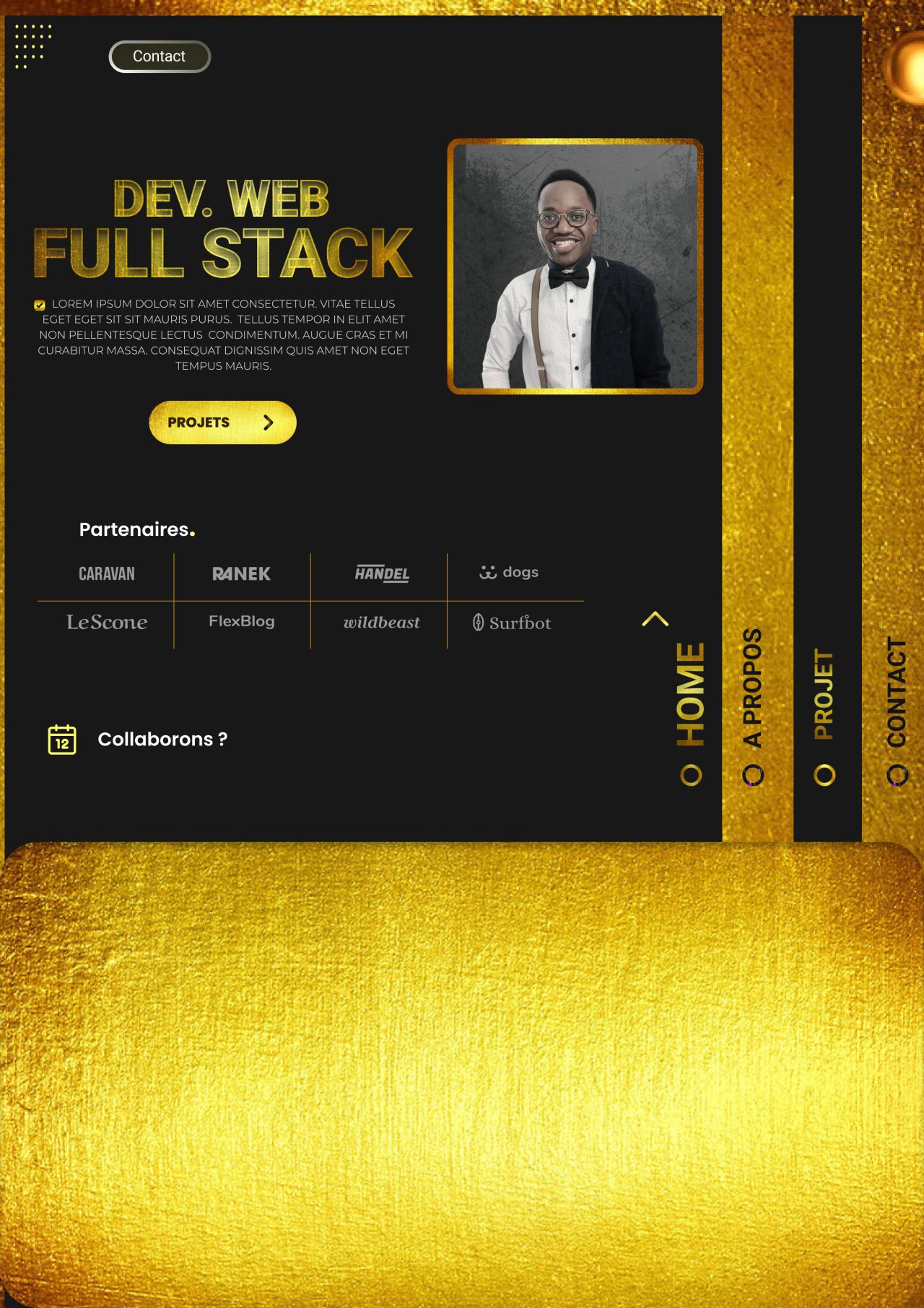 💡 La première page de mon portfolio en Or - Développement Web full-stack en formation.